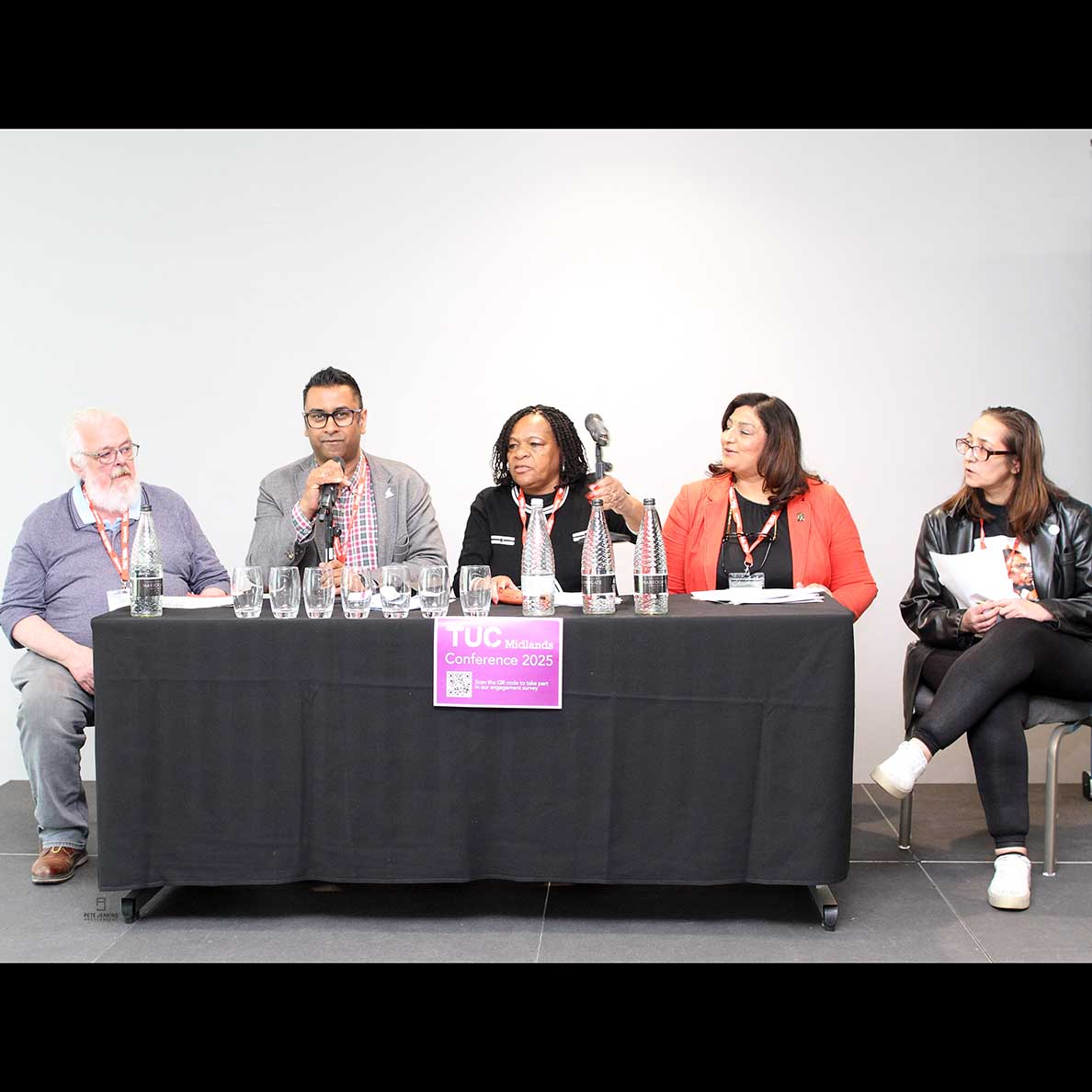 Tackling the Far Right - Panel l-r Andy Chaffer - Unison, Paresh Patel (chair) Unite, Cecile Wright - Unite, Neelan Sundan - Unite, Tracy Abrahams - PCS