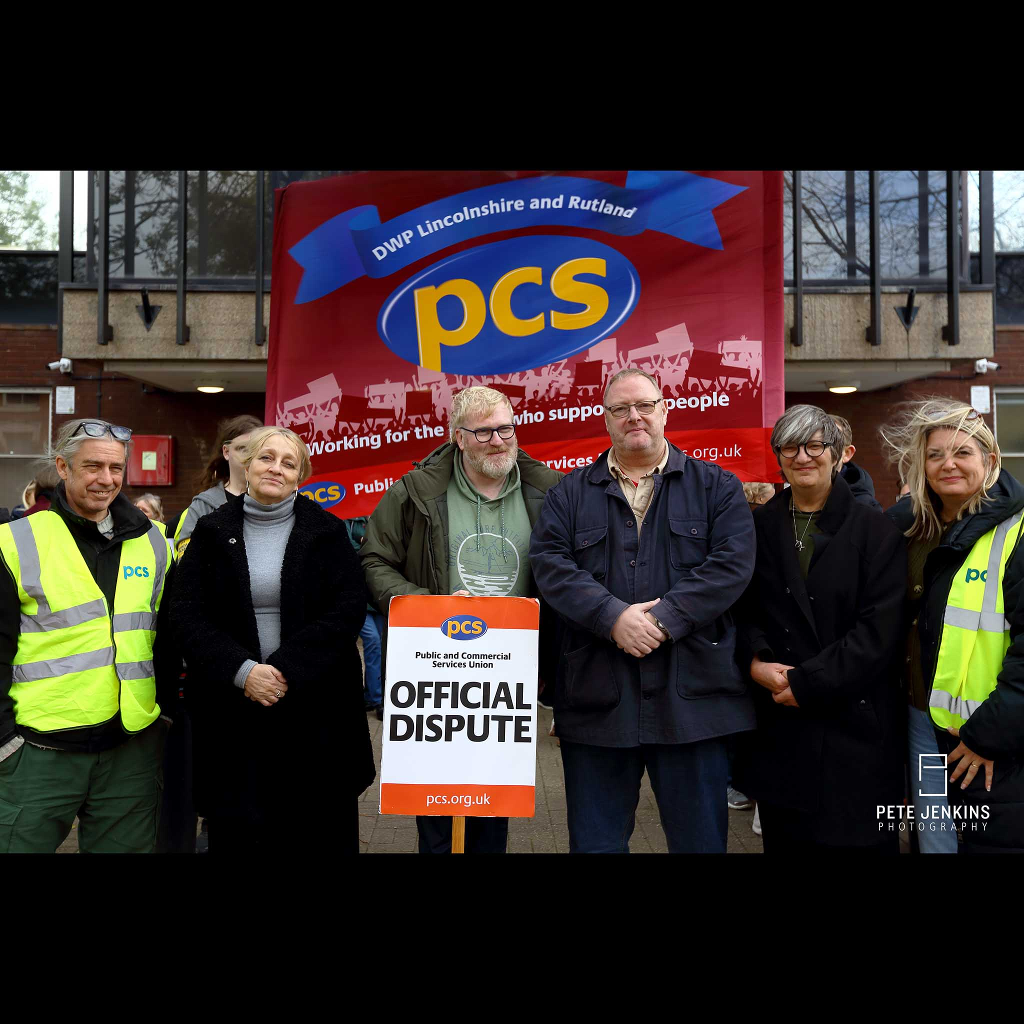 Mark Page, Angela Grant, Ian Fisher (Branch Chair), Martin Cavanagh (PCS President), Bridget Corcoran (Group Officer), Kim (PCS Worker - Group Sec)